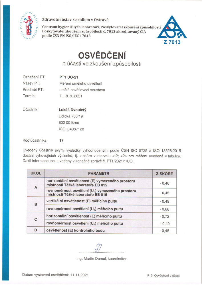 Po instalaci svítidel nastává čas měření intenzity osvětlení. I to vám zajistíme. Měření provádíme s kalibrovaným luxmetrem a s patřičným certifikátem, takže náš výstup můžete použít pro kolaudaci objektů nebo komunikací.
