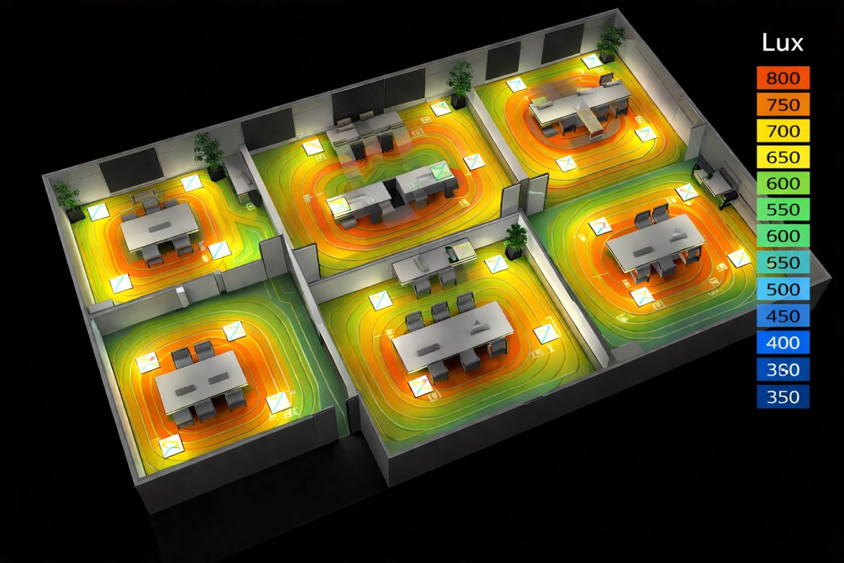 Navrhneme správný počet a rozmístění svítidel v místnosti, aby bylo osvětlení rovnoměrné a komfortní pro práci.