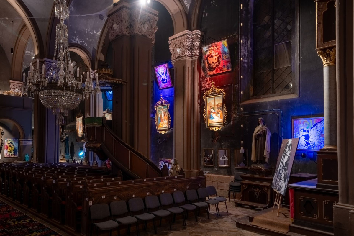 Všechna použitá LED reflektorová svítidla jsou vyrobena ve stejném designu a lakovaná do černé barvy, tak aby co nejvíc splynula s okolím. LED reflektory jsou vybaveny různým typem vyzařovací křivky od 15 až po 55 stupňů. K nasvětlení kleneb bylo použito speciální eleptické sklíčko.