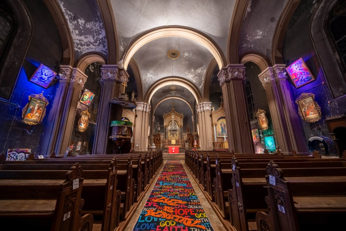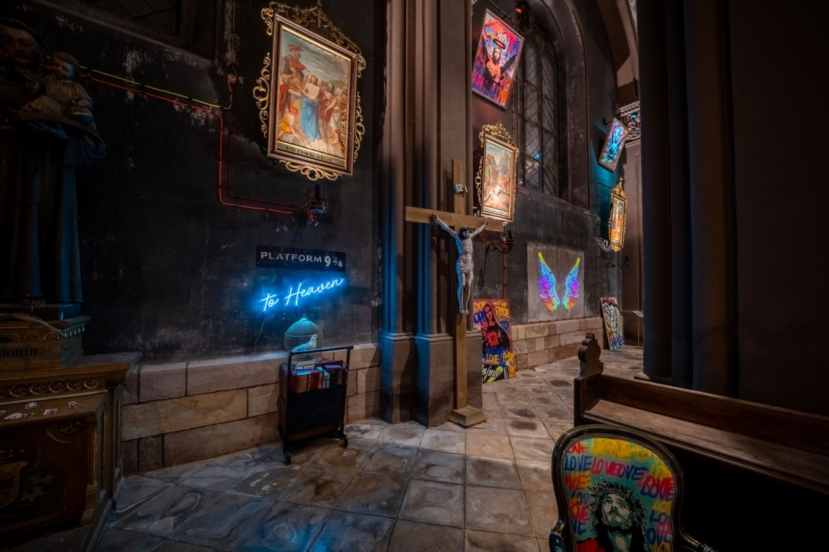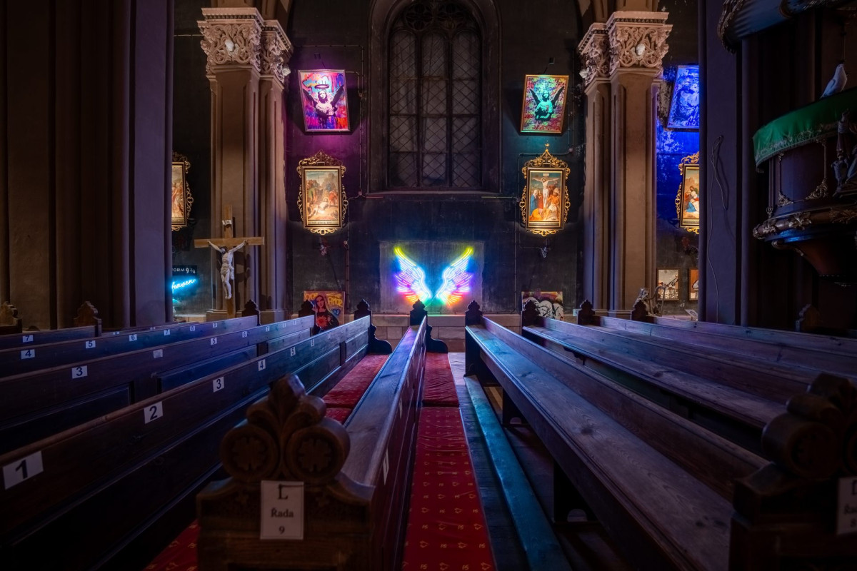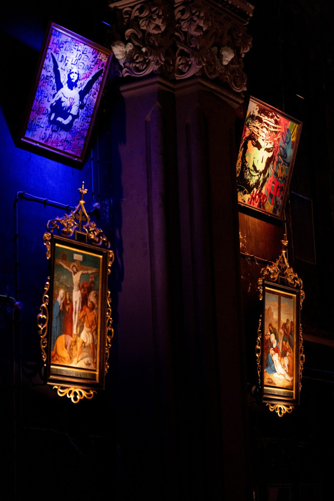 Pro barevné Pop Artové obrazy je nastavena scéna, kdy RGB reflektory postupně mění barvu světla avšak ve velmi pomalém čase, takže návštěvník může stejný obraz vidět v několika různých barvách.